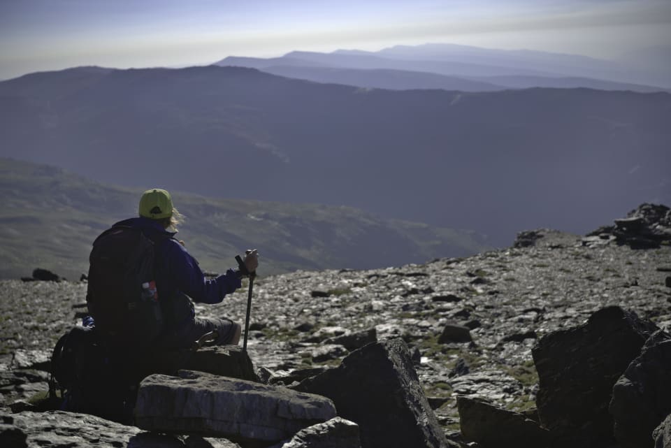 We had plenty of time to catch the bus so spent quite a bit of time enjoying the summit of Tajos de Peñon Negro. Continuing the descent and just before we met the main Mulhacen path and humanity again, we stopped in some rocks and made some tea. It was nice not to have to rush anywhere.